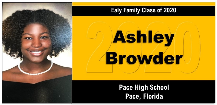 Ashley Grace Browder is graduating from Pace High School in Pace, Florida. She is an honor student and a member of the National Honor Society and the Beta Club. She plans to attend Auburn University in Auburn, Alabama, and major in Medical Sciences, with the desire to pursue medical school. Ashley is the daughter of Anginette Hull Browder, the granddaughter of Andrew Atkins, Sr., the great-granddaughter of the late Roberta Ealy Atkins, and the great-great-granddaughter of App Ealy. (Paul Ealy Branch)