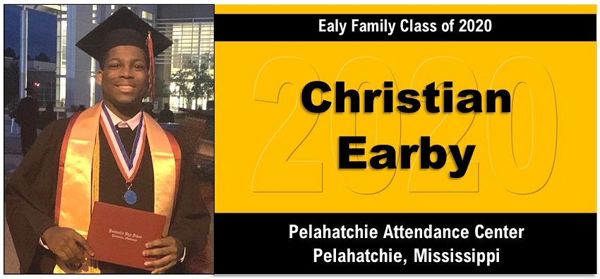 Christian Javon “CJ” Earby graduated with honors from Pelahatchie Attendance Center in Pelahatchie, Mississippi. He plans to attend Hinds Community College in Raymond, Mississippi and major in Electrical Engineering. Afterwards, he plans to transfer to Mississippi State University. He has already completed his academic courses for his major, except for math, and he will be taking his concentration courses in the fall. Christian is the son of Stephanie Grant, the grandson of Daree Youngblood Murrell, the great-grandson of Mattie Ealy Waits, and the great-great-grandson of Theodore Roosevelt Ealy and Willie Mae Ferrell Ealy. (Robert Ealy, Jr. Branch & Adeline Ealy Robertson Branch)