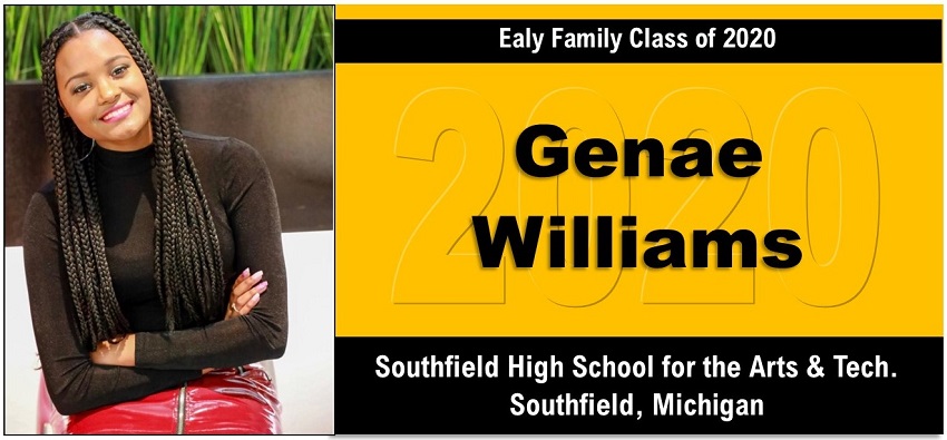 Genae Raychele Williams graduated from the Southfield High School for the Arts & Technology in Southfield, Michigan. She plans to attend Columbia College in Chicago to pursue a Bachelor of Arts degree in Musical Theatre. Genae is the daughter of Marla Papillon Williams, the granddaughter of Catherine Ealy Papillon, the great-granddaughter of the late Littion Pete Ealy, and the great-great-granddaughter of Joe Howard Ealy. (Augustus “Gus” Ealy Branch)