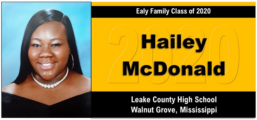 Hailey Sophia McDonald graduated from Leake County High School in Walnut Grove, Mississippi. She plans to attend East Central Community College in Decatur, Mississippi and major in Business Office Technology. She is the daughter of Syretta Meyon McDonald, the granddaughter of Phyllis McDonald, the great-granddaughter of Vera Moten Mapp, and the great-great-granddaughter of the late Pete Moten and Levon McBounds Moten. (Robert Ealy, Jr. Branch & Adeline Ealy Robertson Branch)