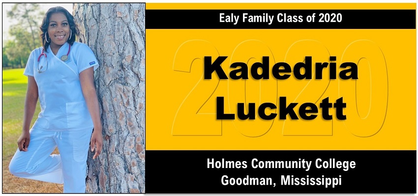 Kadedria Luckett graduated from Holmes Community College with an Associate’s degree in Nursing (RN). She will be working at the University of Mississippi Medical Center in Jackson. She plans to pursue a Bachelor of Science degree in Nursing. She is the daughter of Christina Jones Luckett, the granddaughter of Dianne Ealy Jones, the great-granddaughter of James “J.D.” Ealy, and the great-great-granddaughter of Elijah Bung Ealy. (Paul Ealy Branch)