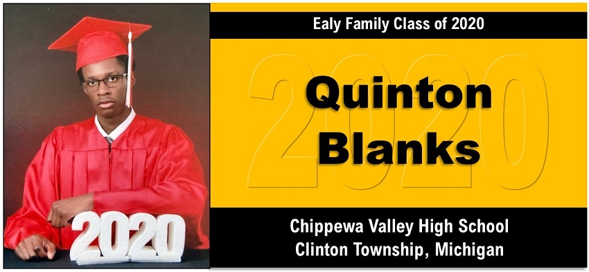 Quinton Blanks is graduating from Chippewa Valley High School in Clinton Township, Michigan in June. He plans to attend Eastern Michigan University in the fall and major in Urban Planning, with an emphasis in transportation. Quinton is the son of Chandra Battle Blanks, the grandson of Helen “Jeannie” Townsend Battle, the great-grandson of Mary Lee Morgan Townsend Thames, and the great-great-grandson of Bobbie Ann Ealy Morgan. (Robert Ealy, Jr. Branch)