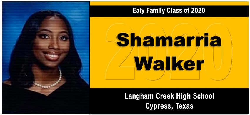 Shamarria Shay Walker is graduating from Langham Creek High School in Cypress, Texas. She earned a 5.5 GPA and scored 29 on the ACT test. She was one of the five female students nominated for Homecoming Queen. She was also a member of the Student Council and the Key Club. Shamarria was awarded scholarships from Louisiana State, Spelman, Tennessee State, Baylor Univ., the Univ. of Texas-Austin, Xavier Univ., and Harvard, but she excitedly chose to attend Louisiana State in Baton Rouge, where she was accepted into the Ogden Honors College. Shamarria is the daughter of Stacey Scott Williams and Tkay Walker, the granddaughter of Mae Butler Williams, the great-granddaughter of the late Willie Butler, and the great-great-granddaughter of Jessie Beamon Butler. (Annie Ealy Beamon Branch)