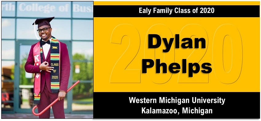 Dylan Phelps graduated from Western Michigan University in Kalamazoo, Michigan. He is from Detroit, Michigan. He received a Bachelor’s degree in Telecommunications and Information Management. He is a member of Kappa Alpha Psi Fraternity, Western Michigan’s Gamma Beta Chapter. Dylan is the son of Tim Phelps, the grandson of Terry Phelps, the great-grandson of the late Rosie Mae Kennedy, and the great-great-grandson of Will Kennedy. (Martha Ealy Kennedy Branch)